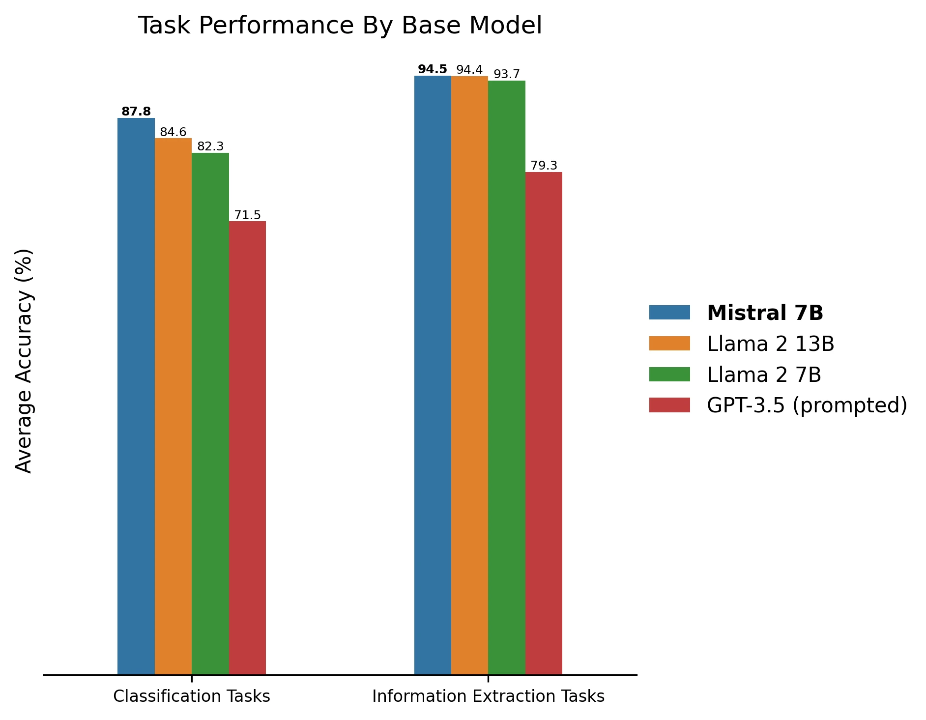 TL;DR: If you’re fine-tuning a task-specific LLM under 34B parameters you should probably be using Mistral. The performance improvements vs Llama 2 are significant and generalize across many task types.