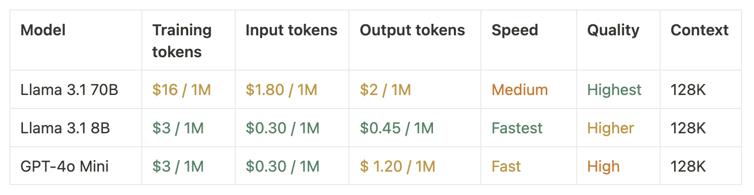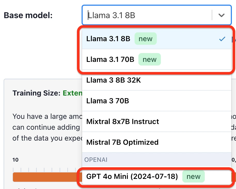 We’re excited to announce three new major models that went live on the OpenPipe platform yesterday: Llama 3.1 8B and 70B, and GPT-4o mini. Here’s what you need to know:
