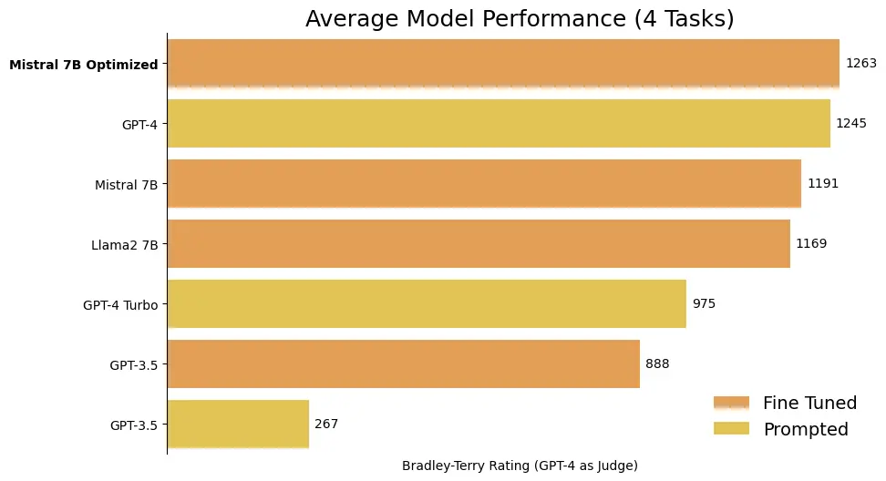 We recently released a new Mistral fine-tune that outperforms Mistral’s base 7B model, and in some cases even outperforms GPT-4 once it has been fine-tuned for a specific customer task! The launch was well-received on HN and Twitter, and we already have dozens of fine-tuned models deployed on top of the new release. Find out more in the announcement post.
